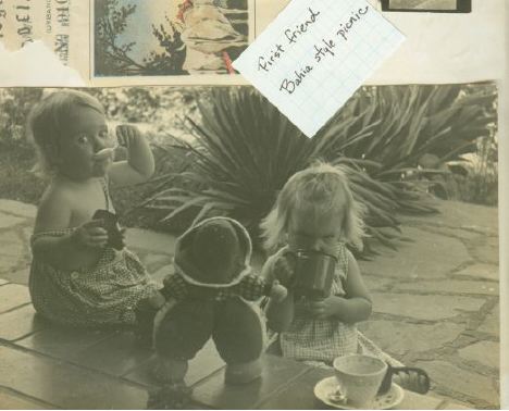 Salvador overlooks a bay. There are 38 islands in that bay. I probably never went to one but the view shaped my outlook. I am an islander at heart--enriched by an enclosed environment requiring a different kind of transportation so visitors would have to want to go there. It's not a loner existence but a special, set apart one. The state of Bahia is bigger than Texas.The cobbled streets near our house were steep. There was an elevator, Lacerda, built from the cidade alta to the cidade baixa (upper and lower city). It looks like a construction project in progress jutting out streamlined, modern, a rival to Rio's more famous massive protective Cristo with outstretched arms. I doubt that I rode the elevator or sailed on the bay. I was content to nest and sing in our beautiful house. I was given the name Christine by my father who had seen Greta Garbo in a talkie playing Queen Christina of Sweden. My godmother didn't like it. She had a silver baby cup inscribed"'Irene" and wouldn't change it. How did I get a godmother when my parents were agnostics? Leo Wrench, married to "Big Bob" Wrench, was a good friend and influential. Leo didn't like the name Della(my mother's name) so Della was arbitrarily changed to Judy, which stuck for forty years. My parents were also good friends with the British consul, a Catholic. Within a month of my birth I was christened Christine. The certificate is elaborately embellished. The christening dress could fit a tiny soft animal. It's curious that the agnostics branded me with a destiny-- follower of Christ. The Hindus say the awaiting soul chooses its parents. I can see it. I can see me also choosing that house in that place. The house was stone and, strangely for a South American house, had a large fireplace. It was a lesson in contrasts. There is a picture of me in front of the wintry fireplace dressed in summery batiste with my favorite object, a flyswatter. No blanket or doll for me. Judy said the bathrooms were like Grand Central station. I laid claim to the garden and my mosquito netted nook where I could hear the birds. I was carried about by the cook and her assistants, Alma and Zsa Zsa. My world consisted of music, comfort, my necklace and my flyswatter. My brother's existence was opposite to mine as he was going to a German school where he tackled his work dervishly and was first in his class by the end of the year. He spoke German & English. I spoke Portuguese in a waterfall sort of way. He was very busy and accomplished. Our encounters were friendly but we were already on differing paths. I preferred to sing all day and sew. Except for the times I almost died (of a fish bone stuck in my throat, a tropical fever going too high) my days were pleasant. My observational skills were honed by the visiting dignitaries. My mother thought it significant that Walt Disney was one of them. The Magic Kingdom coming to me.