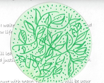 The session began with a song composed by the Monks of Western Priory and then we were introduced to a woman from Epiphany Episcopal Church who would lead us in art explorations. There were pastel boxes provided and paper. In the background, soft sacred music played. The highlight was to make a mandala keeping in mind the themes of hope, love, joy, and peace. In the center of our drawings would be the light. She spoke about the whole--light and shadow. She said to pick a color which spoke to us or we could use all the colors. Mine surprised me--oh! the inner depths we have we didn't know about! I titled my mandala Tree of Living with the subheading, Street art of a soaring spirit. The pastels made the strokes delicate, free and I chose green, the color of hope and environmental stewardship. I was done so quickly, she asked me quietly if I would like to do another. I said no. I figured I had had my say. The other participants used the entire forty minutes and all the colors. Their mandalas were beautiful and individual, a true revelation of their personalities. We explained in the closing minutes what had been important to us. I had to leave before the end and was sorry but I had an appointment. Curiously, I thought I would come up with a poem about the beauty of silence or doing but it wasn't the case. Perhaps my heart had been set free with the green lines let loose in my mandela. I have written a Christmas poem every year since I was sixteen. They vary greatly in topic and form. I'm glad that this year's reflects my mood. It's haiku for simplicity and peace/love/joy/hope pops up in its attitude: