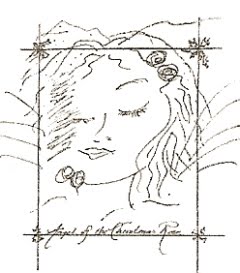 Brain studies fascinate me. Where do ideas come from? Who is it taps me on the shoulder with gentle suggestions, "Why not try this?" What brings to mind the perfect word I wasn't even looking for? Since childhood I have attributed it all to angels, fanciful angels, storytelling angels, with my best interests at heart. I don't take credit for my creative efforts. I am simply a conduit. You, perhaps, have another explanation. My brother is a fine artist. He can sketch in a minute what I would not do in a lifetime. Cheryl Dolby of Roanoke, Virginia does masterworks of color but that doesn't hold me back. I'm not comparing myself to anyone. I just like to draw angels. These drawings began in 1985 when a list of titles came flooding. 26 in one day! Titles such as Angel of Divine Assignments, Angel of Molecular Levels, Angel of Uninhabited Isles, Angel of Lined Paper Notebooks. And the twins, Angel of It Doesn't Matter at All and Angel of It Matters a Lot. I couldn't imagine writing 26 poems for the titles. I decided I was supposed to draw something. I didn't know what. I hope the Angel of the Christmas Rose above inspires you to a list of your own and a frenzy of doodles.Petals in the snow?