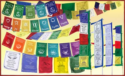 "It's a grand old flag, it's a high flyin' flag!" I remember Barbara Emily, about three years old, punching out the words and soaring on the tune while in her car seat in the back of my little white Subaru Justy. You know how three year olds are: once they find something they like, they will repeat it for days on end; sometimes only one word will catch their attention as in, "Flag, flag, flag." I kept my eye on the road but also I began thinking (didn't want to interrupt her) about flags, all the flags of countries I had lived in with Brazil the only one I remembered. Prayer flags and early American flags are my cup of tea. I like the way prayer flags look like colorful washing on a clothesline. Delving this week into the history of prayer flags I found this quote: